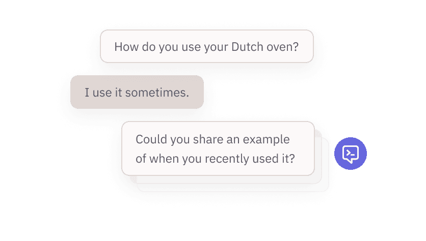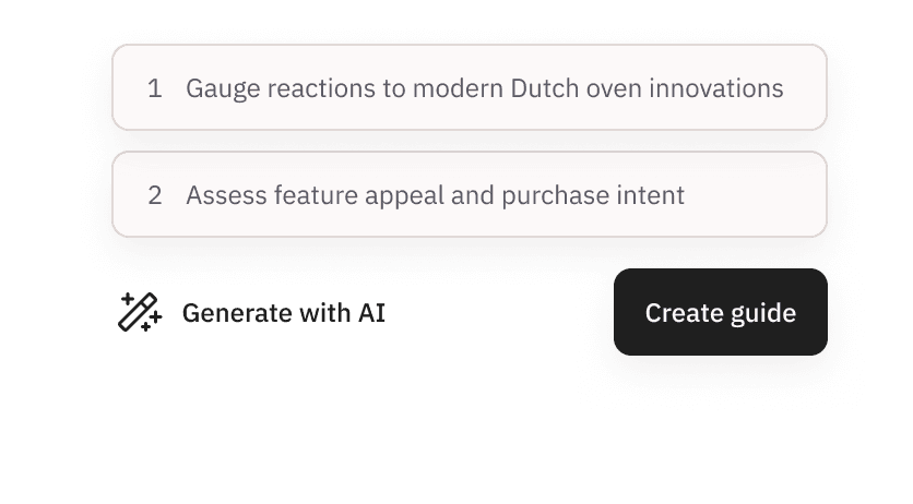 Set your core guide once, then let AI follow up dynamically according to participant responses in the moment to clarify meaning, unpack tradeoffs, and dig into the “why” — without leading.
